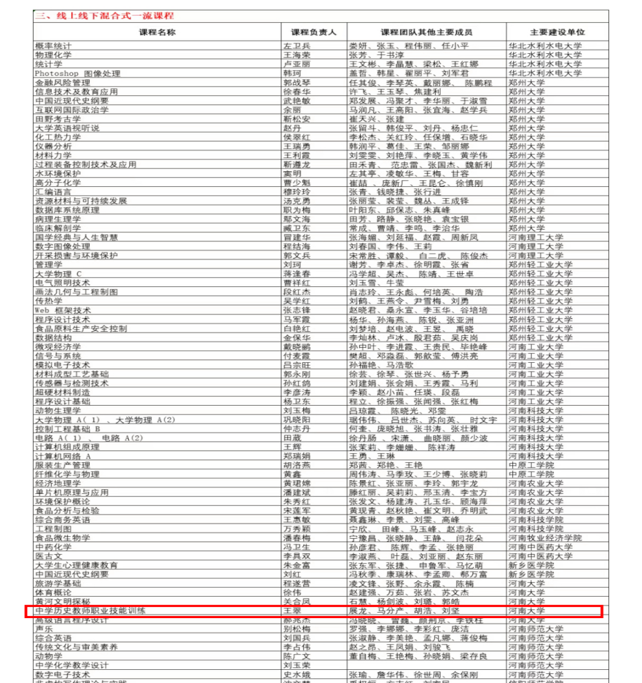 入选第二批国家级一流本科课程的《中学历史教师职业技能训练》(线上线下混合式一流课程)由太阳官网王翠老师组成的教学团队,该门课程是一门将中学历史教学理论与教学实践相融合的创新型课程。
